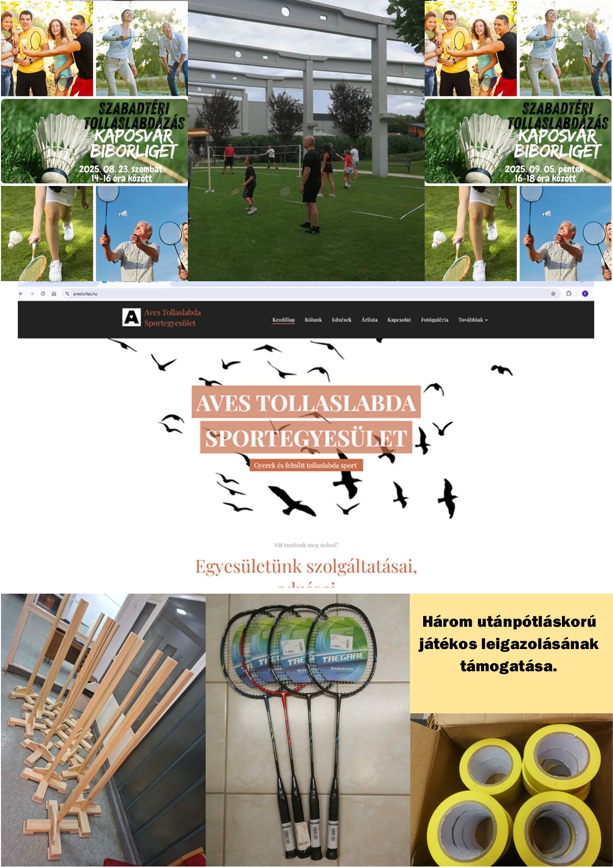 - Szövetségi támogatásunk még elég volt 4 darab tollaslabda ütő megvásárlására, amivel azt vállaltuk, hogy a szabadtéri rendezvényeinken használjuk, illetve bármilyen olyan esetben, ha egyesületi tagoknak szüksége van rá. Legyen ez akár egy verseny.